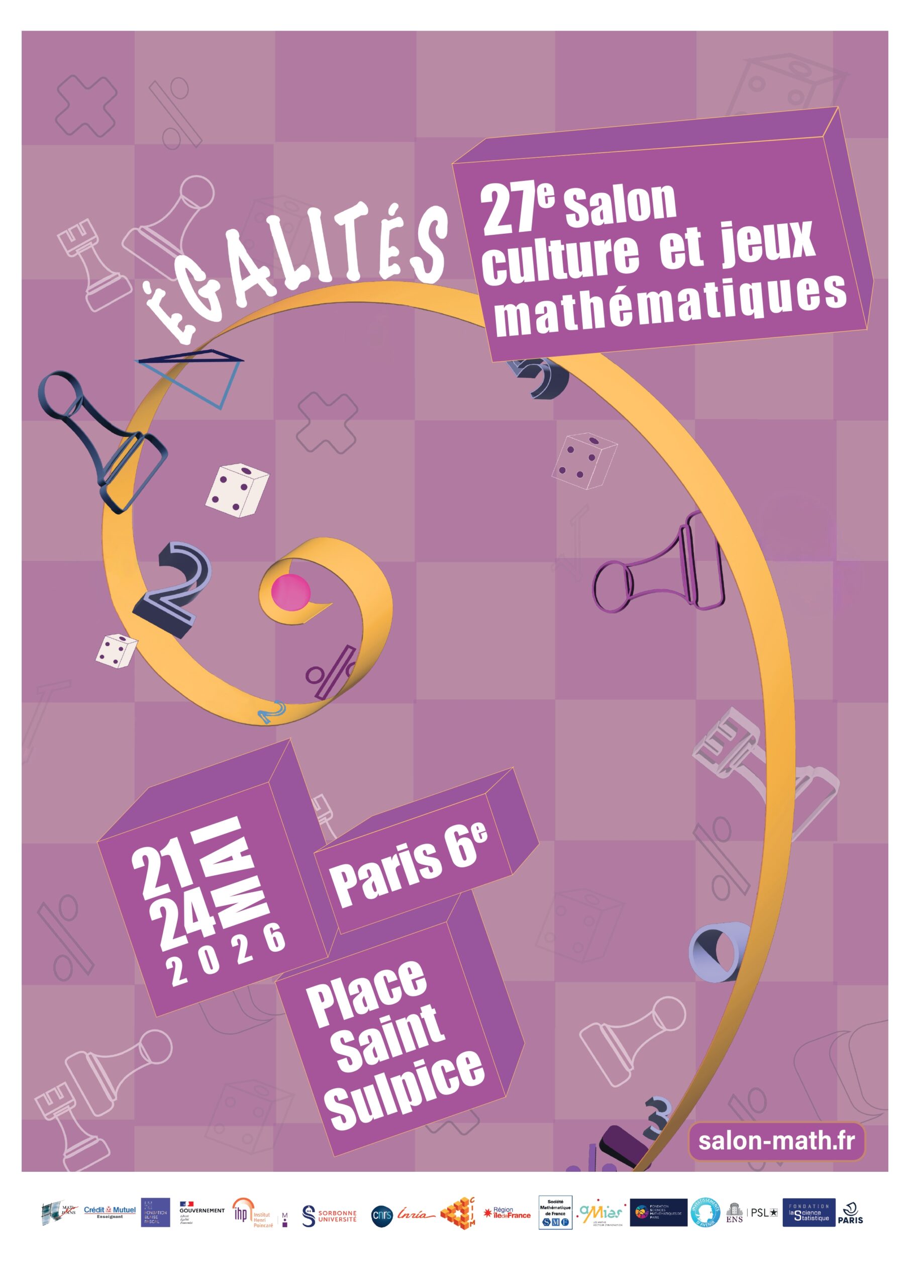 Cette année, le Salon mettra à l’honneur le thème « Égalités », avec une programmation toujours plus riche et variée ! Quatre jours de découvertes, de jeux, d’ateliers interactifs et de rencontres avec des passionné·e·s vous attendent pour célébrer les mathématiques autrement.